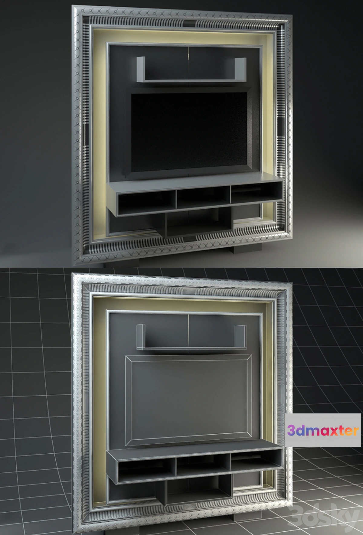 Wall panels Vismara in art deco style to install the plasma display a DVD player and other equipment a place for the storage of DVDs. Modelil with the size of the directory.