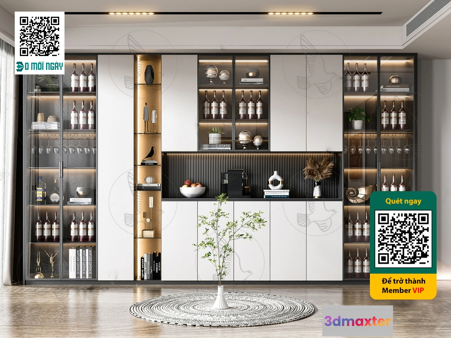 3D Models / 3D Scenes / Interior / Commercial Spaces / Wine cabinet 3D – 003 – 3807