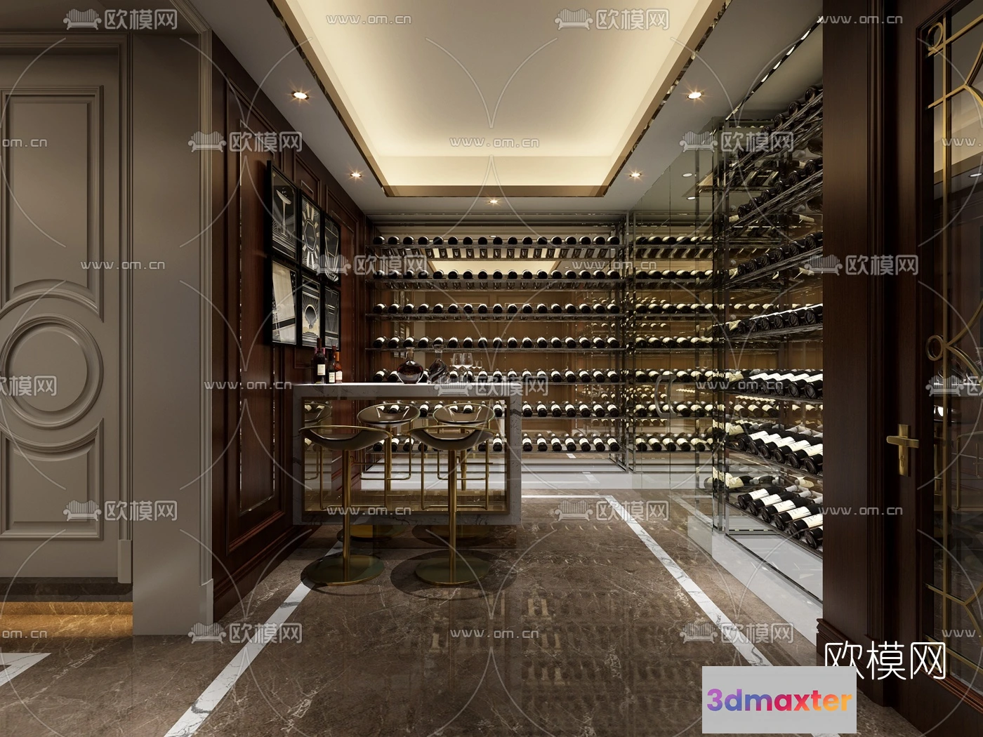 3D Models / 3D Scenes / Interior / Commercial Spaces / Wine Cellar 3D Model – Wine Cabinet – 002 – VRAY Render 3D Max