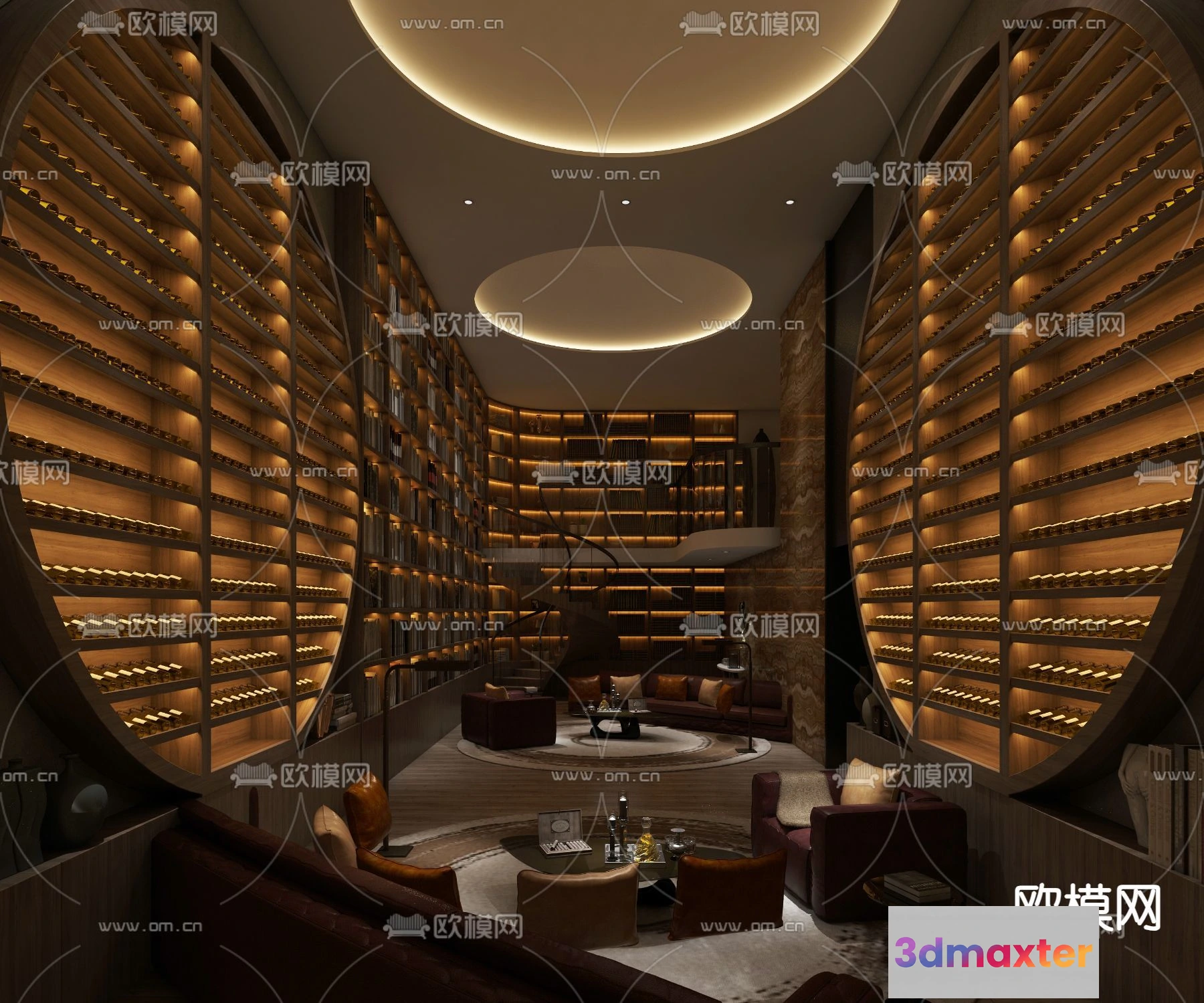 3D Models / 3D Scenes / Interior / Commercial Spaces / Wine Cellar 3D Model – Wine Cabinet – 048 – VRAY Render 3D Max