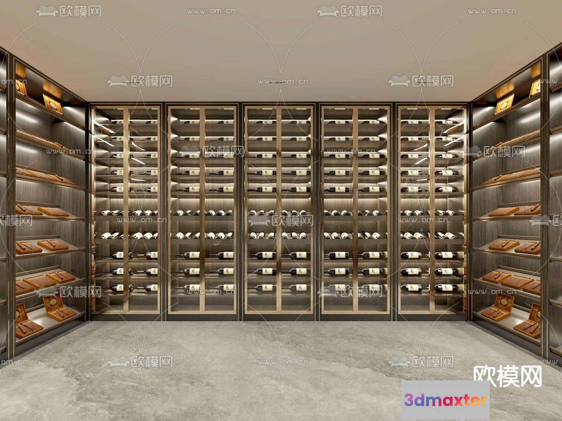 3D Models / 3D Scenes / Interior / Commercial Spaces / Wine Cellar 3D Model – Wine Cabinet – 063 – VRAY Render 3D Max