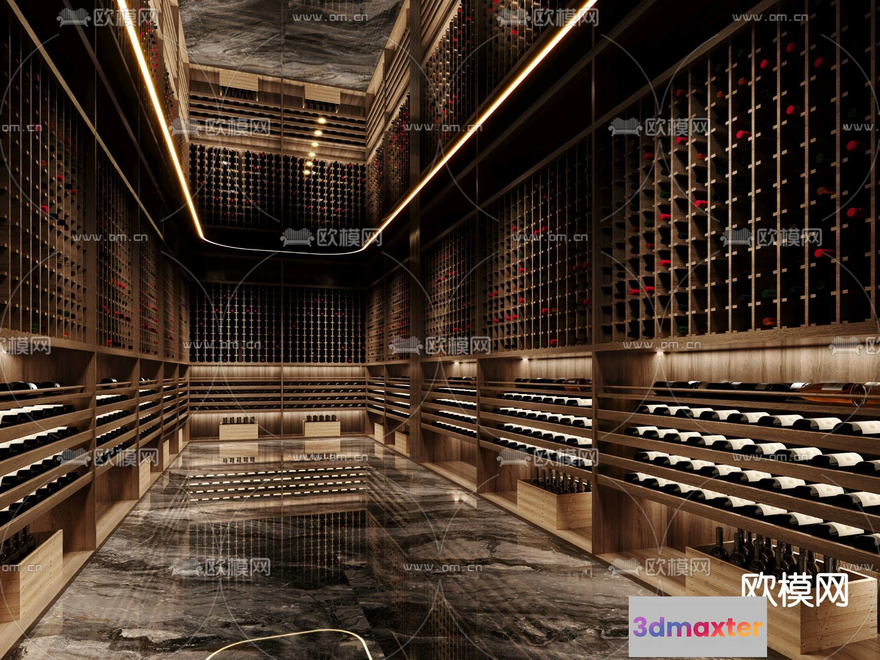 3D Models / 3D Scenes / Interior / Commercial Spaces / Wine Cellar 3D Model – Wine Cabinet – 066 – CORONA Render 3D Max