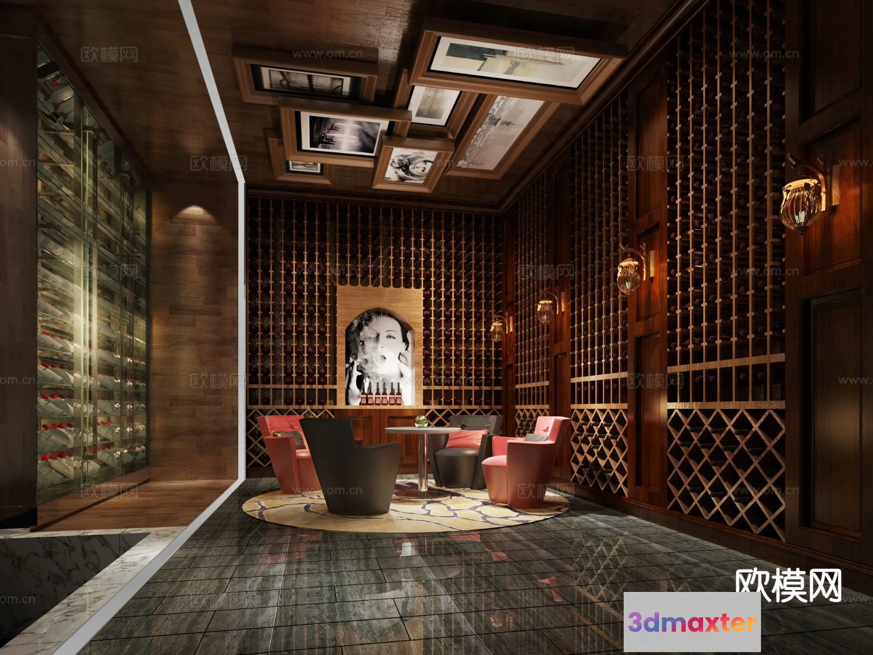 3D Models / 3D Scenes / Interior / Commercial Spaces / Wine Cellar 3D Model – Wine Cabinet – 072 – VRAY Render 3D Max