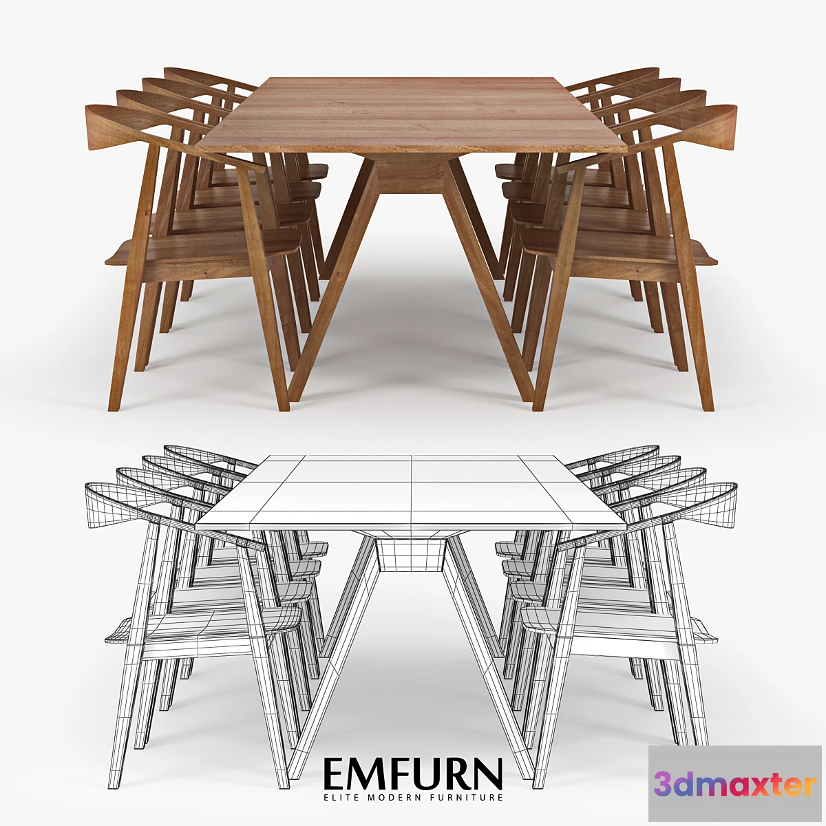 3D Models / Furniture / Table and Chair / Wood dining table EMFURN 3D Max