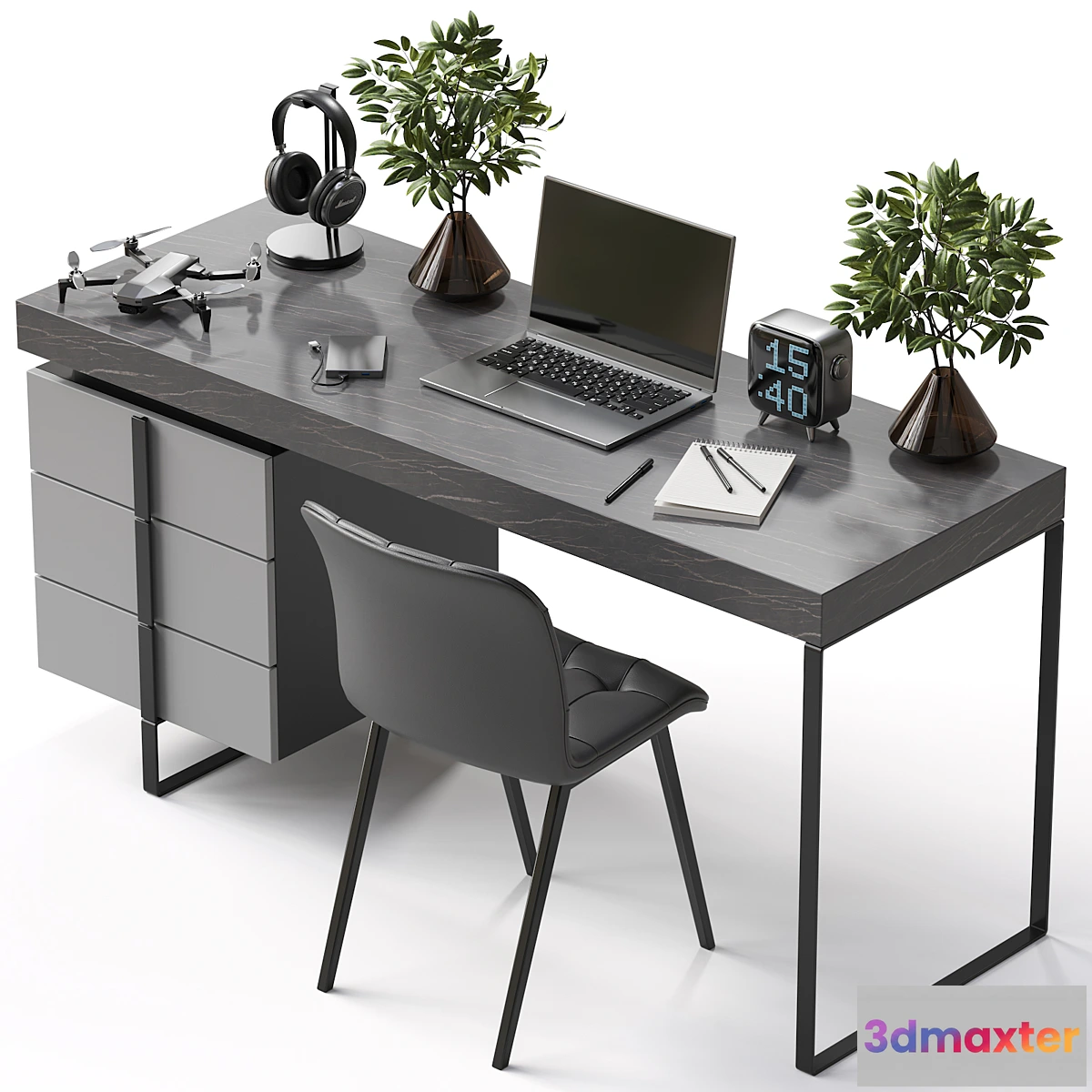 3d model of a workplace with decor and electronics.