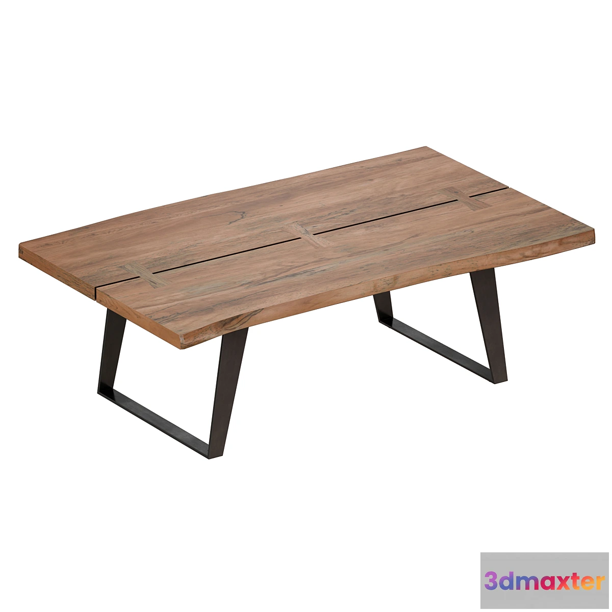 Angled U-shaped legs fashioned from steel and finished in matte antique black provide a modern counterpoint to the live-edge wood planks. Table will exhibit unique grains knots and fissures that add to the distinct character of this exceptional statement piece. The Yukon Natural Coffee Table is a Crate and Barrel exclusive.
